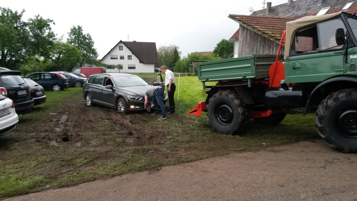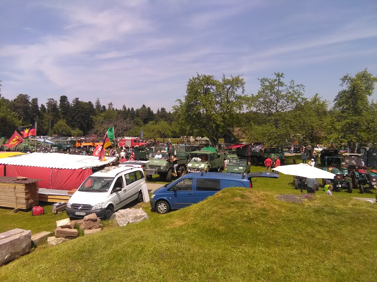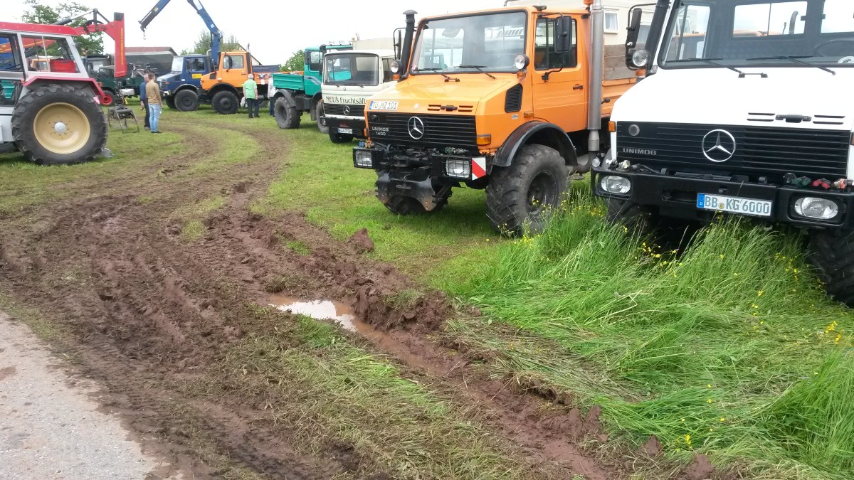 Die von dem am Vortag und in der Nacht niedergegangen Regenmassen hatten den Boden aufgeweicht und so war manche Showeinlage mit dem Herausziehen von Fahrzeugen zu beobachten. Gerätschaften hierzu waren ja genügend vorhanden.