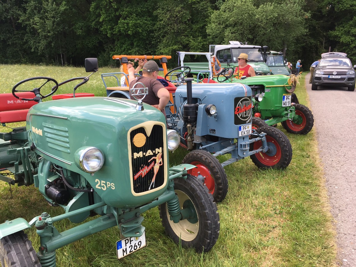Außer den im nahen Umkreis bekannten Traktorvereine und UNIMOG – Clubmitglieder kommen Jahr für Jahr mehr Fahrzeuge auch aus weiter entfernten Regionen dazu. Einhundert bis einhundertzwanzig Kilometer sind viele der Fahrzeuge bis nach Schmieh gefahren. Manche reisten schon am Samstagmittag an, damit sich der weite Weg lohnte – und somit mehr Zeit zum Fachsimpeln und gemeinsamen Austausch in geselliger Runde war.